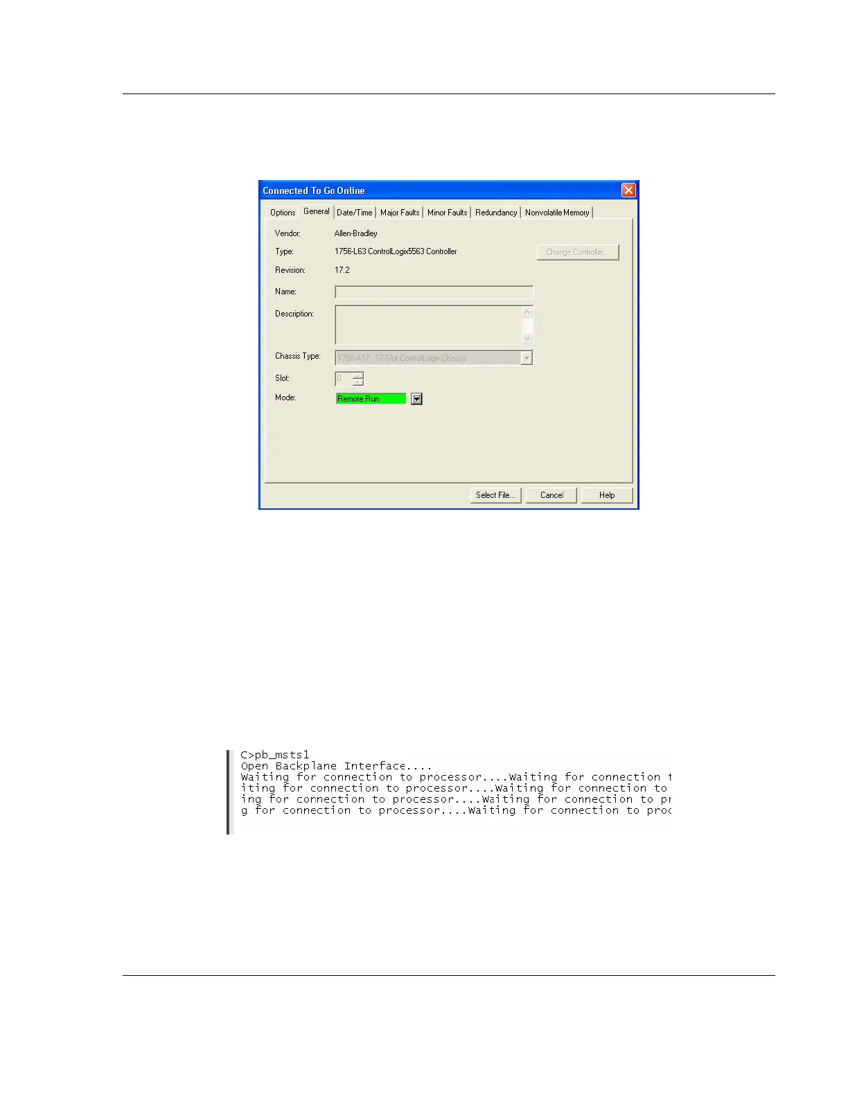 5 In the Connected To Go Online dialog box, click the GENERAL tab. This tab
