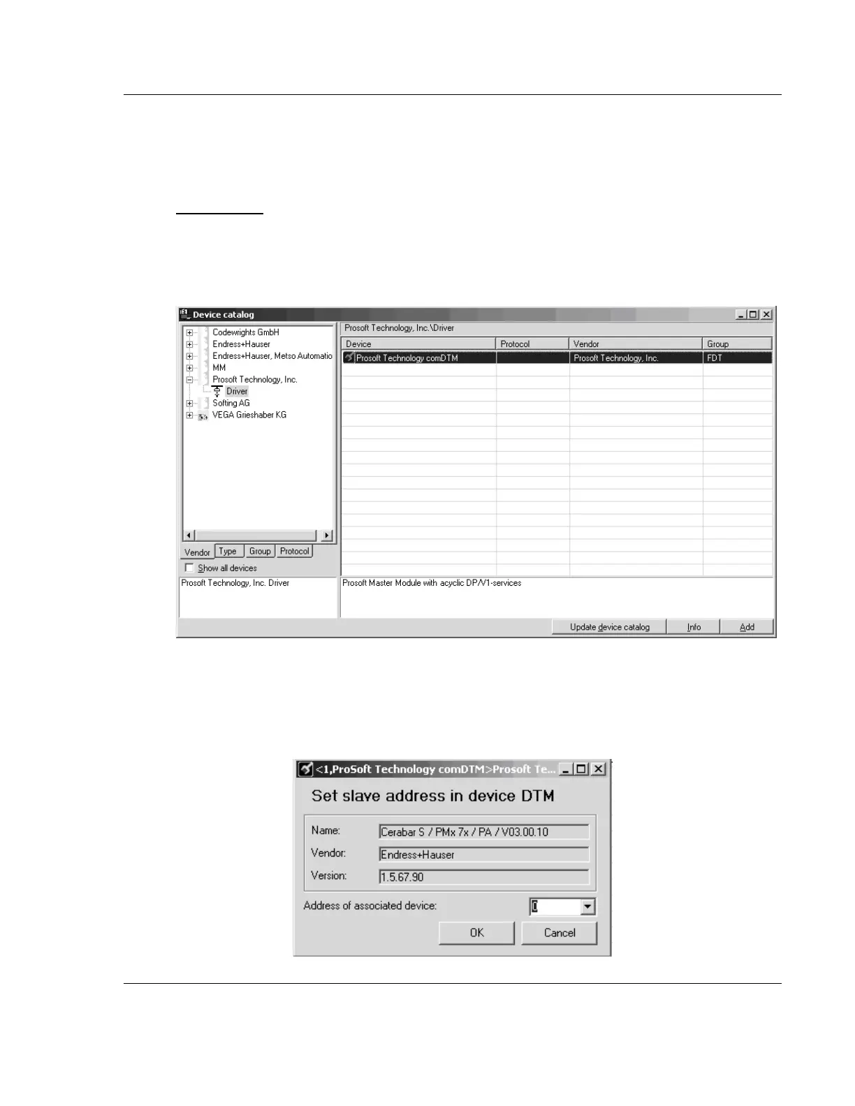3 Select the PROSOFT TECHNOLOGY COMDTM entry in the device catalog, and