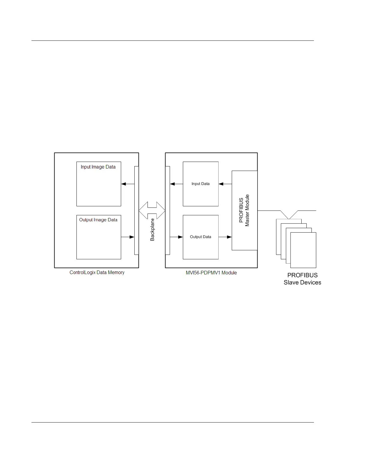 The MVI56-PDPMV1 module communicates with the processor over the