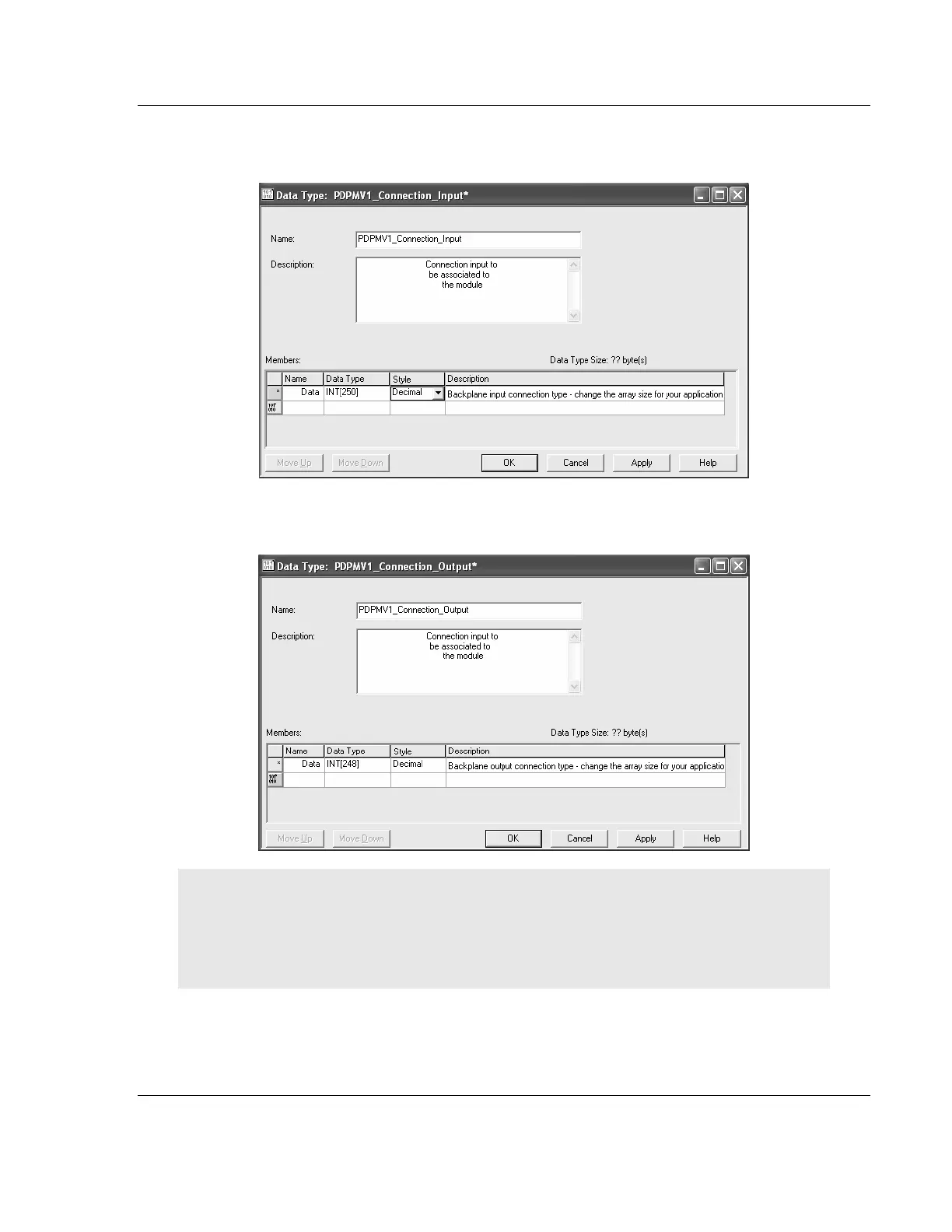 And, the PDPMV1_CONNECTION_OUTPUT user-defined data type must have an