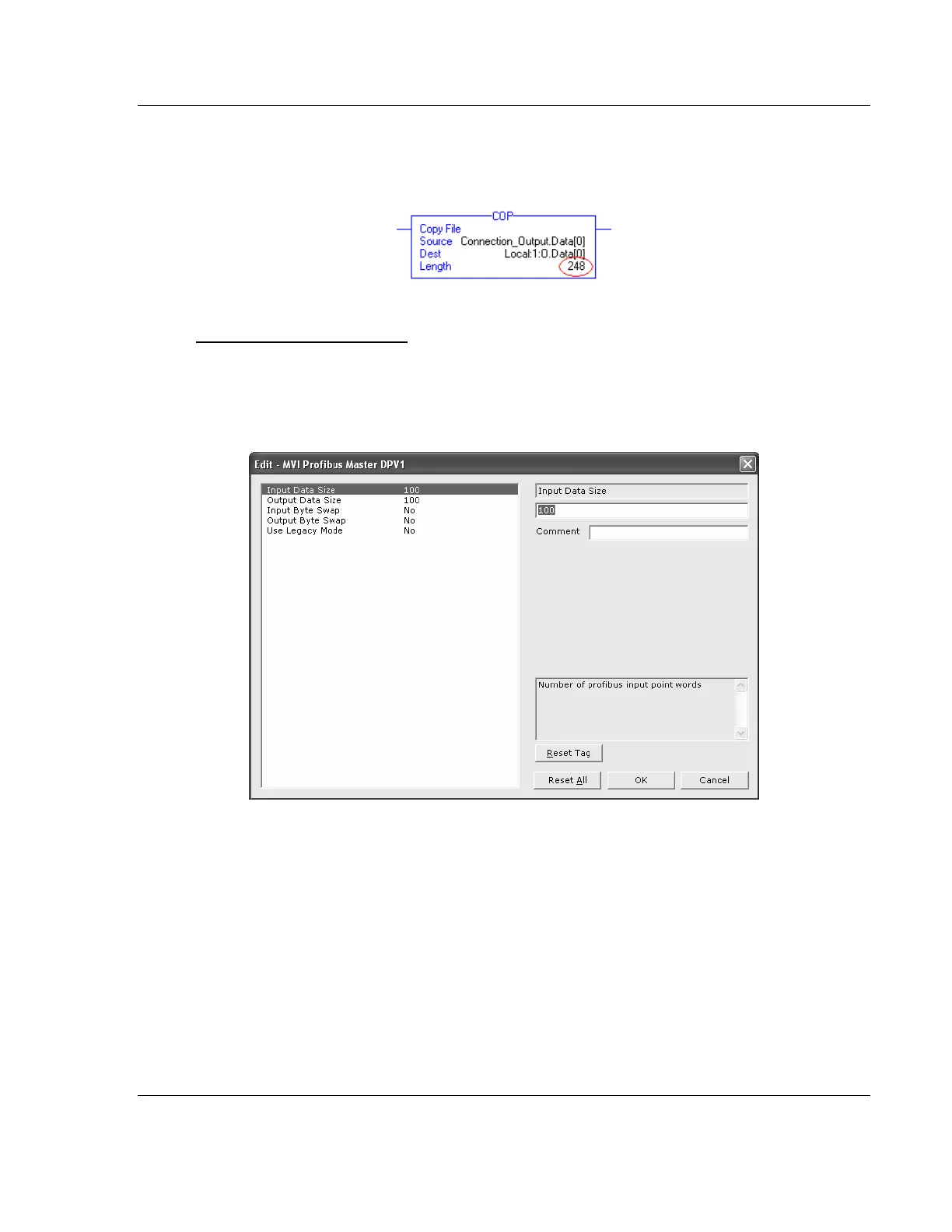 PROFIBUS INPUT DATA SIZE: 100 WORDS