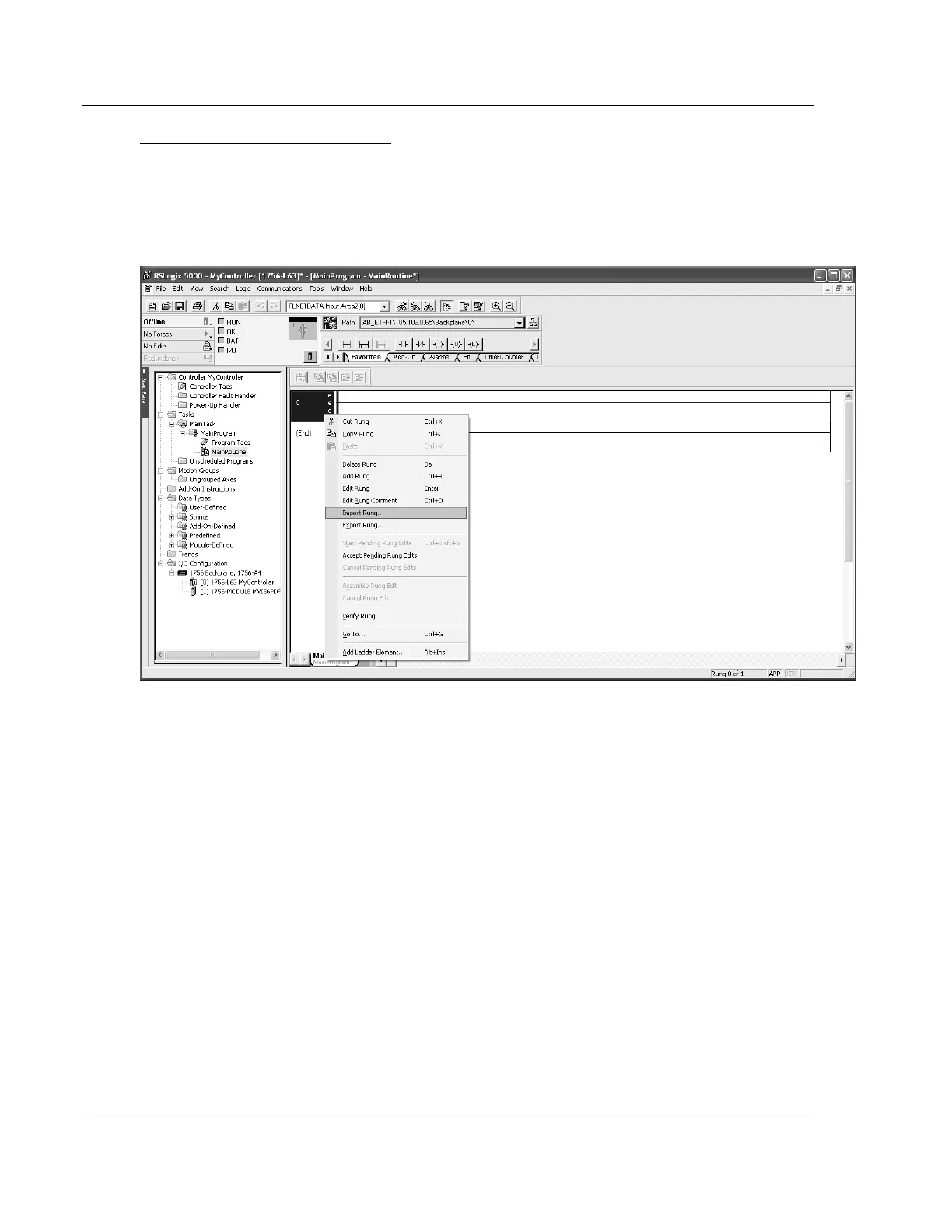3 In the MainProgram folder, select an empty rung, and then click the right