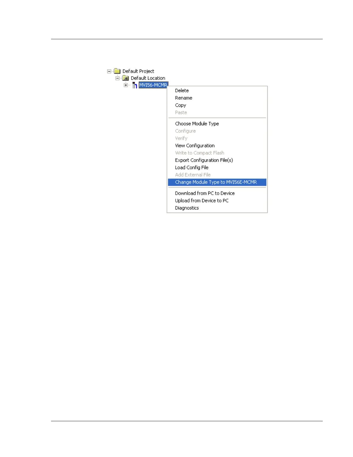 2 On the shortcut menu, select CHANGE MODULE TYPE TO MVI56E-MCMR.