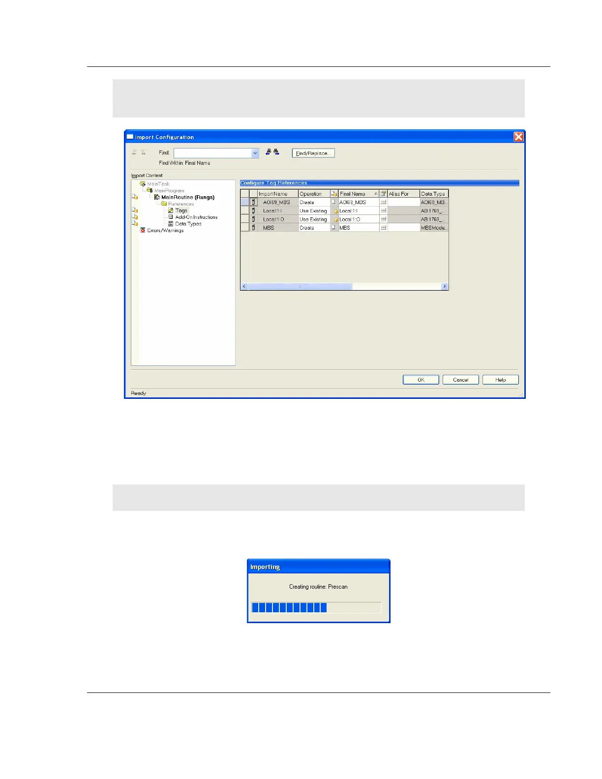 Note: If you are using RSLogix version 16 or earlier, the Import Configuration dialog box does not
