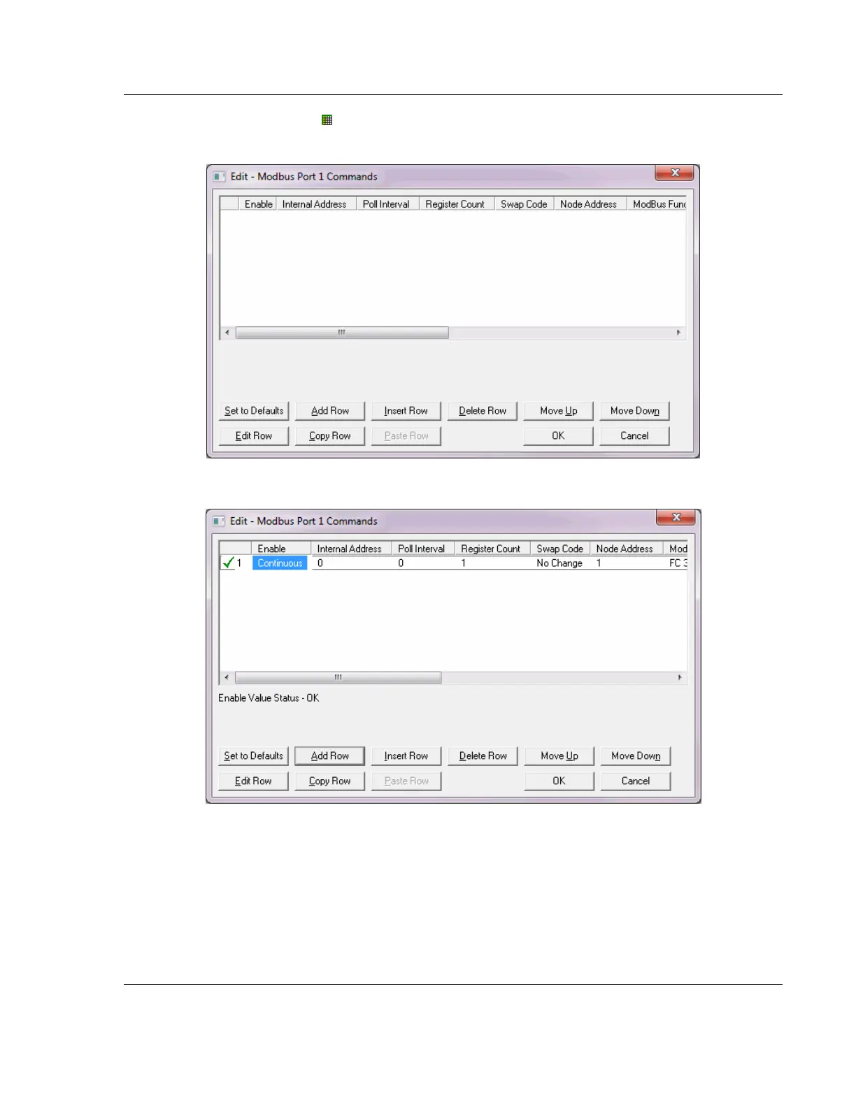 dialog box to build and edit Modbus Master commands.