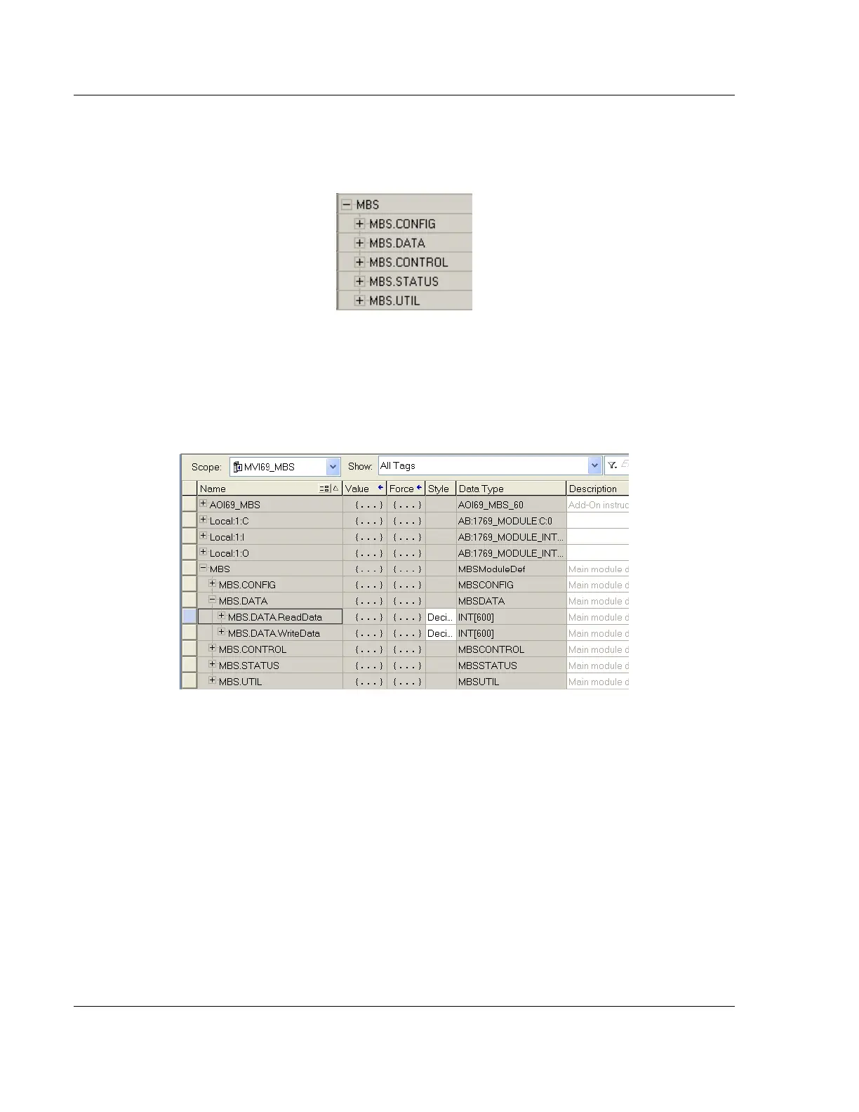 For example, if you expand the MBS.DATA controller tag structure, you see that