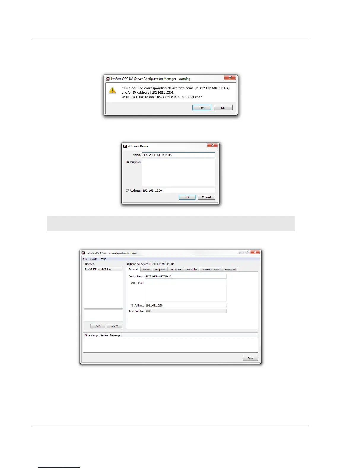 found the PLX32-EIP-MBTCP-UA on the local network. Click YES to add