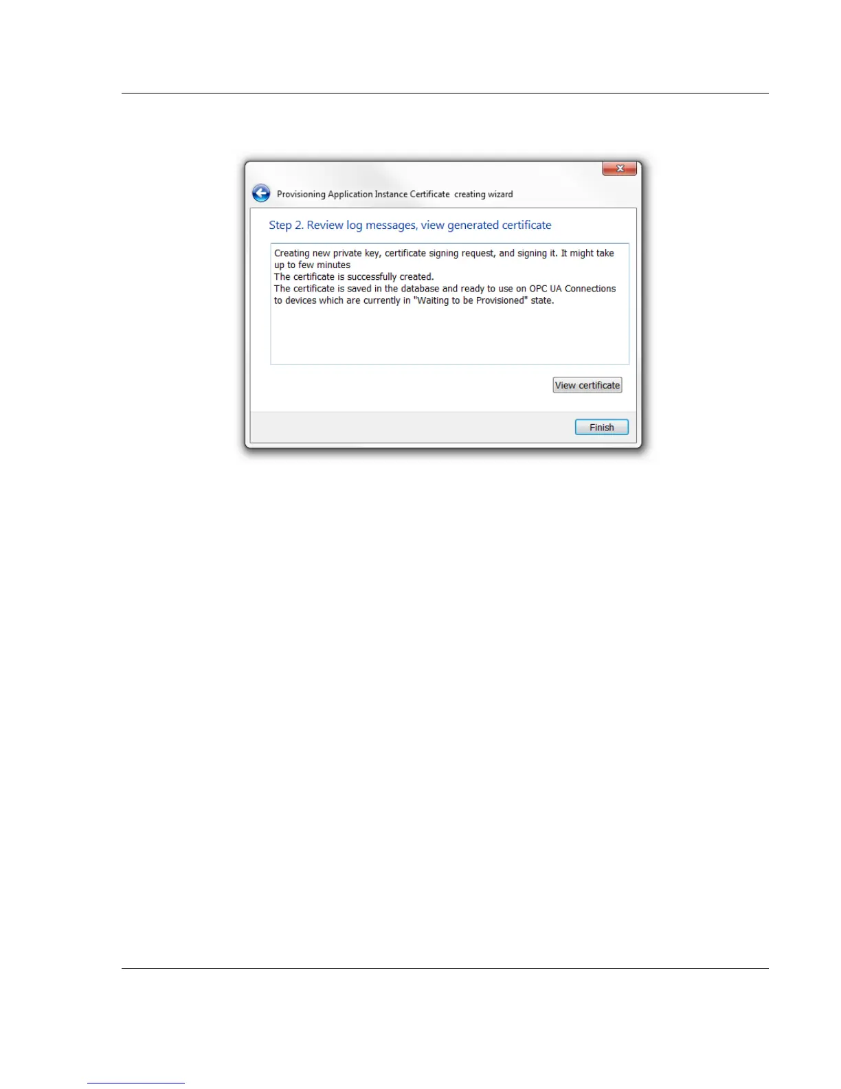 3 The software creates the certificate with your application information.