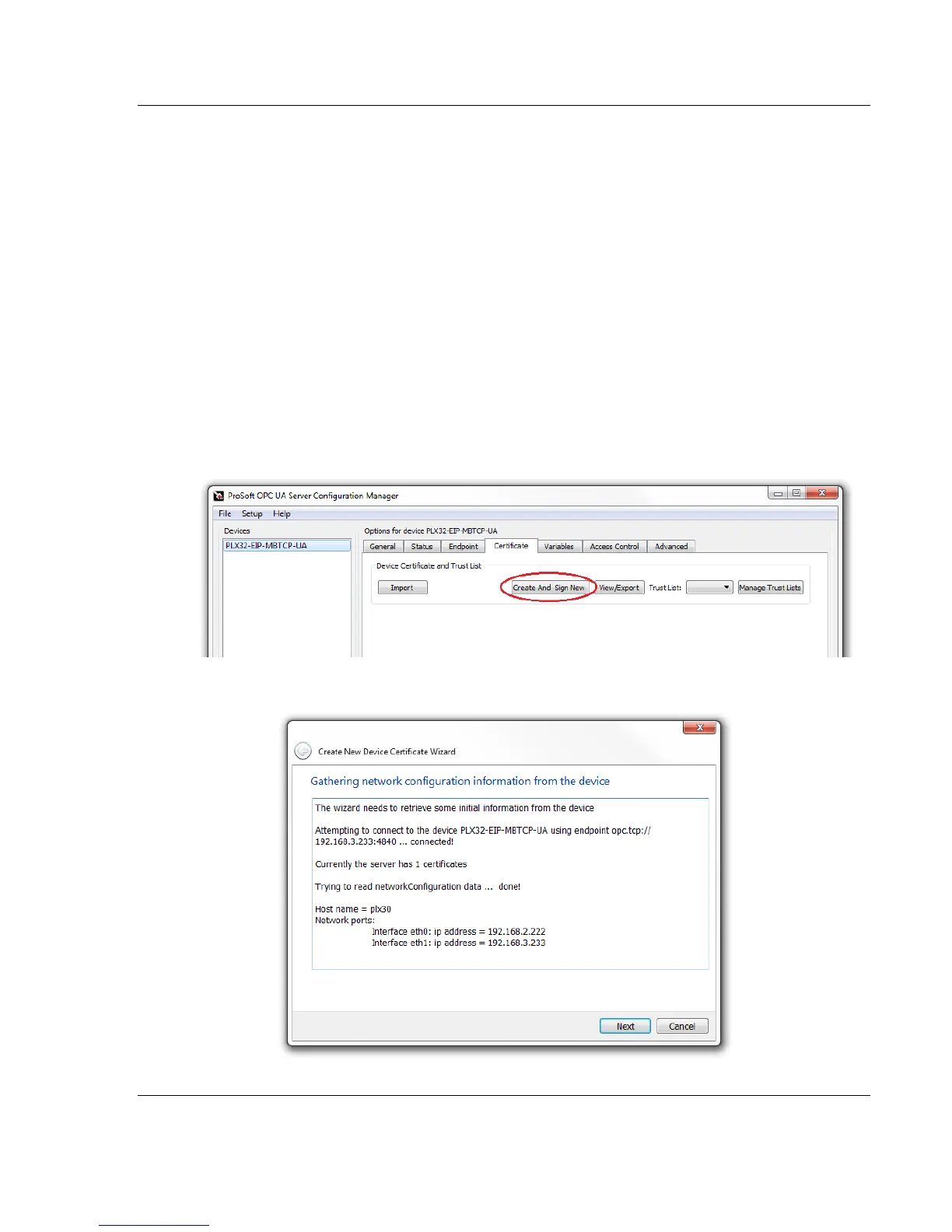 Initially, the PLX32-EIP-MBTCP-UA has a self-signed certificate that is used as