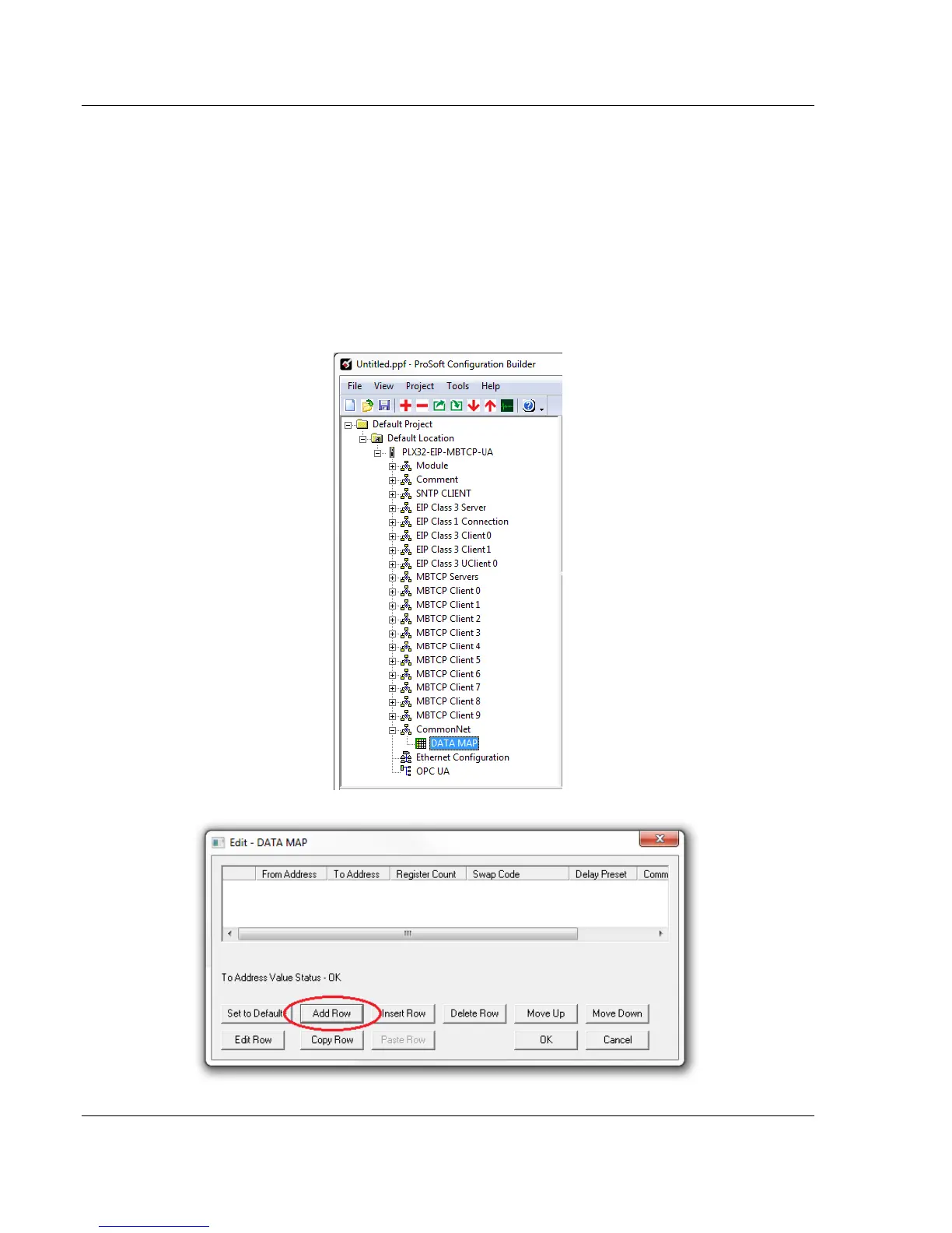 3 The Edit – DATA MAP dialog box opens. Click on the ADD ROW button.