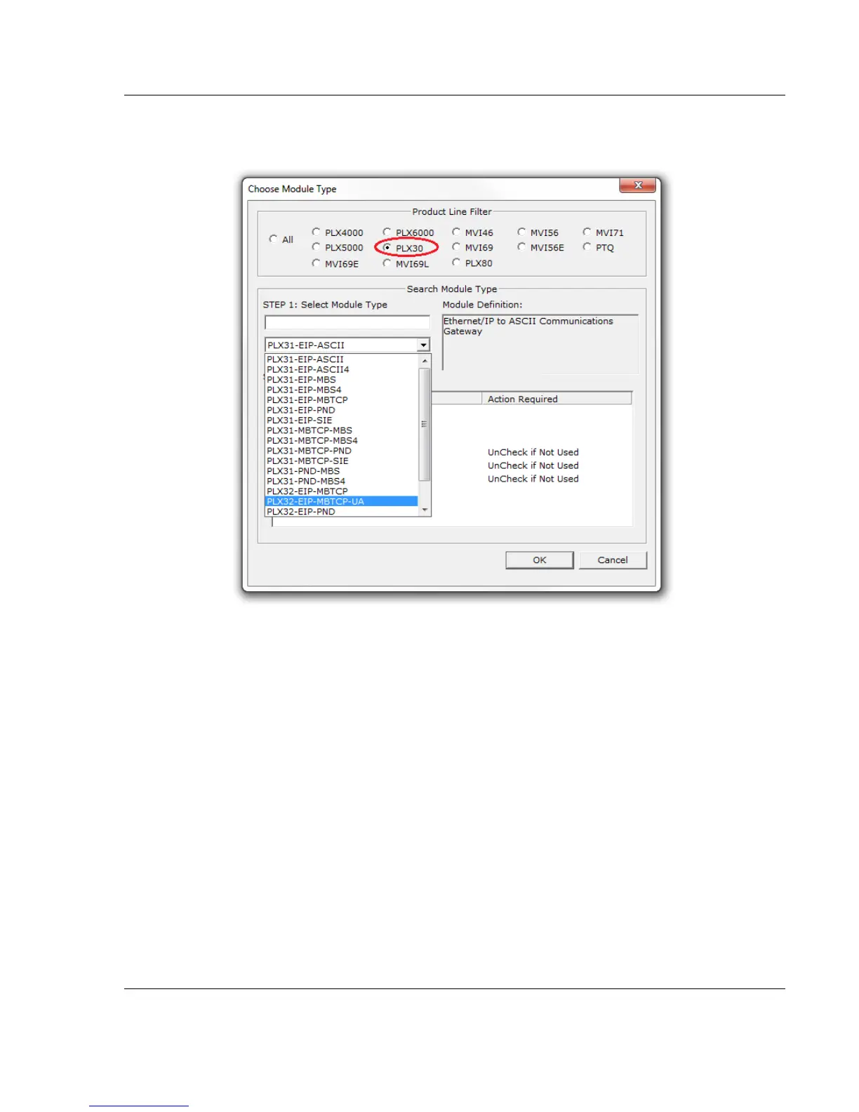 2 In the Product Line Filter area of the dialog box, select the PLX30 radio