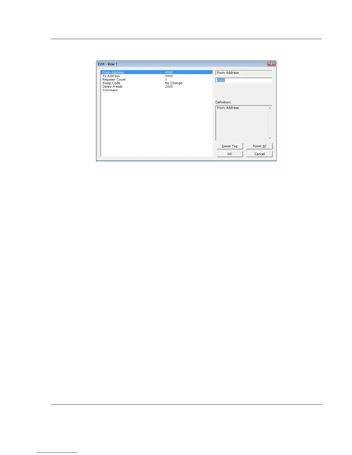 This address can be any valid address in the user data area or the status data