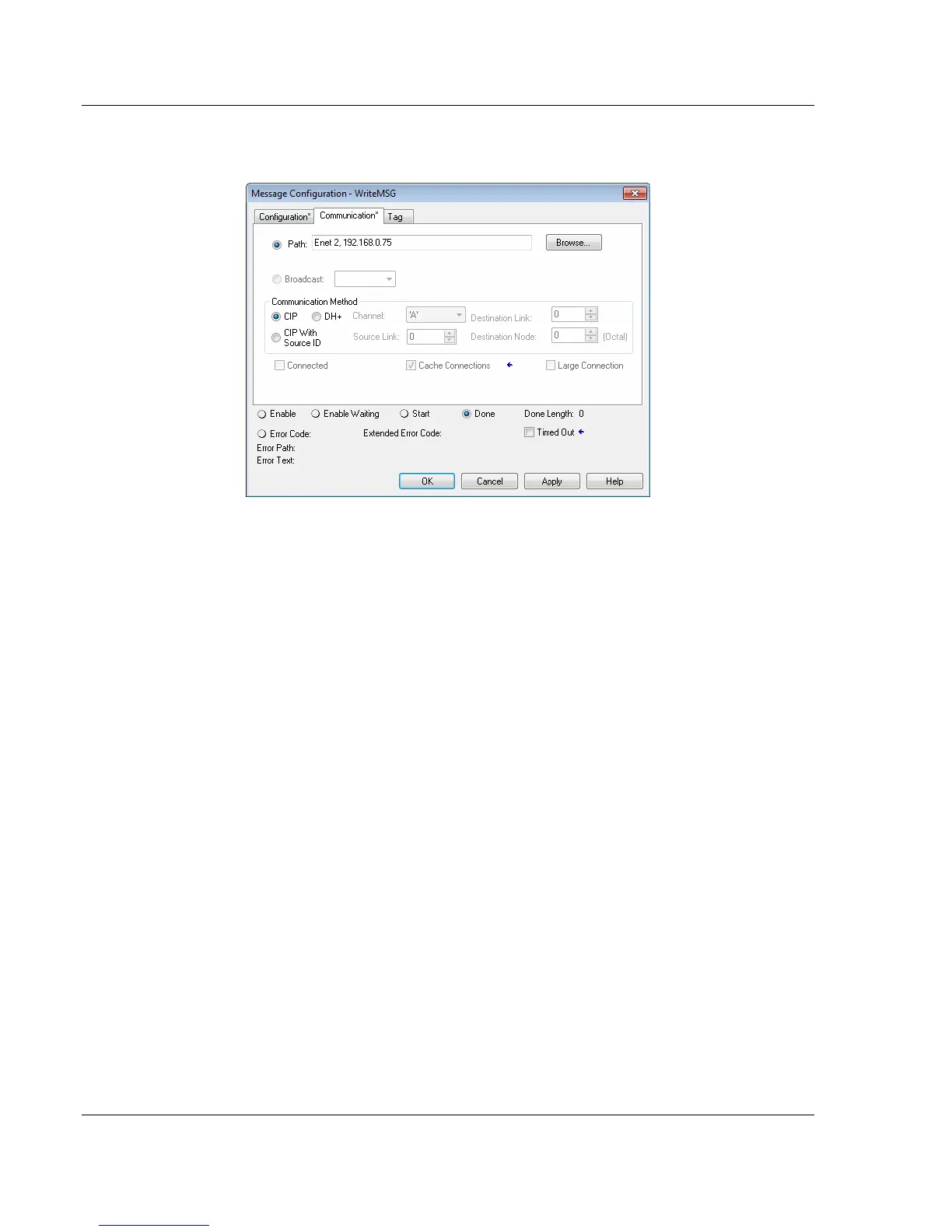 4 Make sure you select CIP as the COMMUNICATION METHOD. The PATH