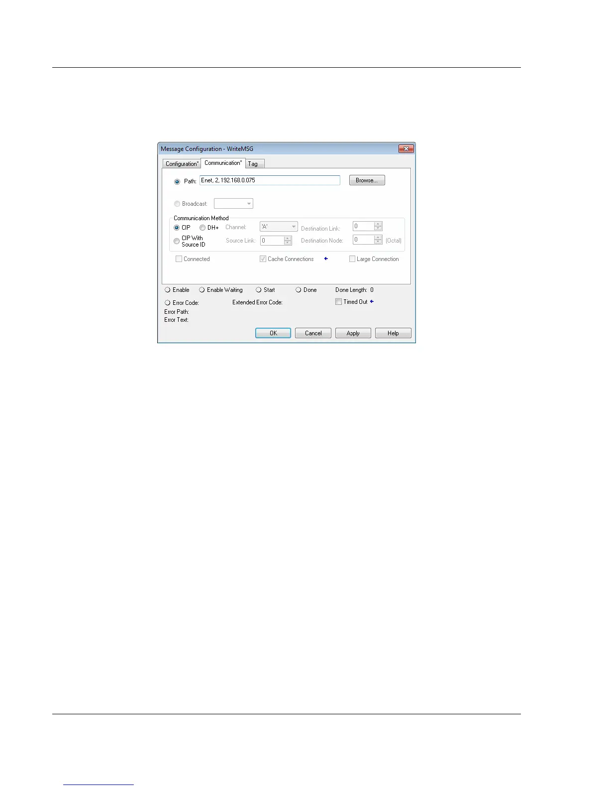 location for the write operation of ten elements. Click the COMMUNICATION tab