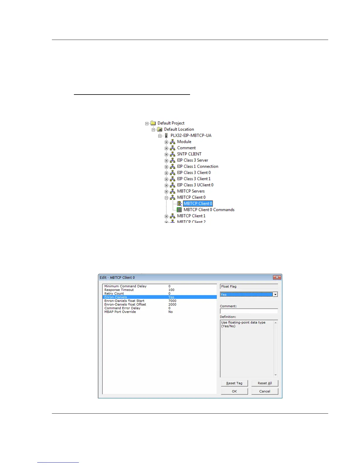 2 Double-click the second MBTCP Client [x] to display the Edit - MBTCP Client