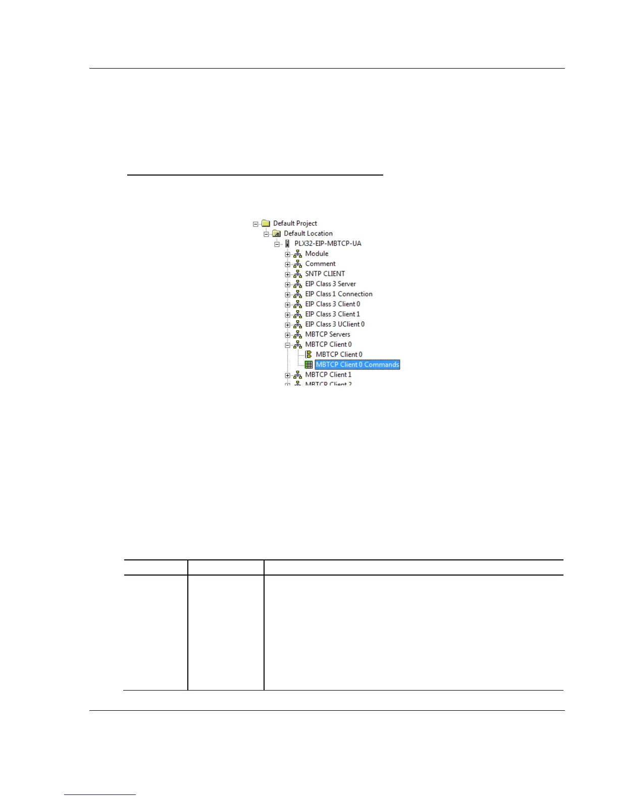 UA with Modbus TCP/IP server devices. The commands in the list specify the