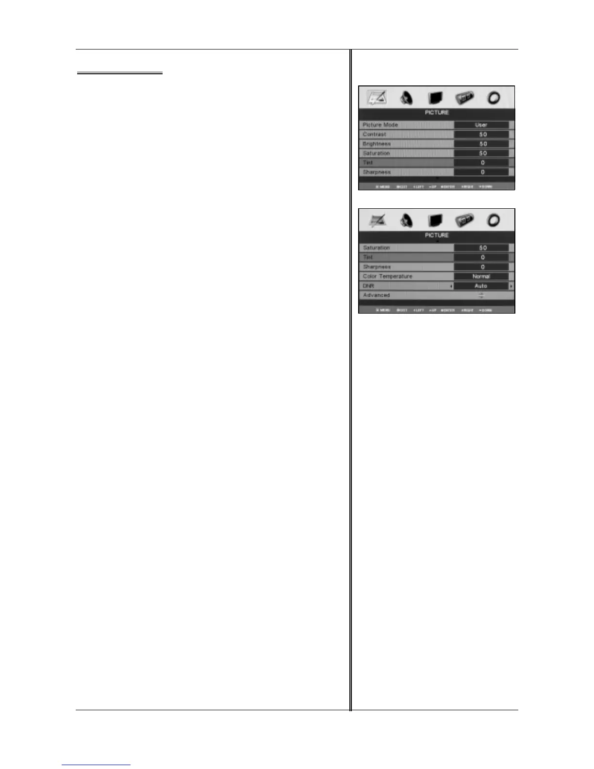 There are nine menu items in the “PICTURE”: Picture Mode,