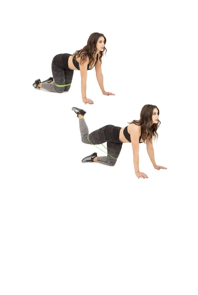 Place the band around thighs or calves. Flex one foot and lift it toward the