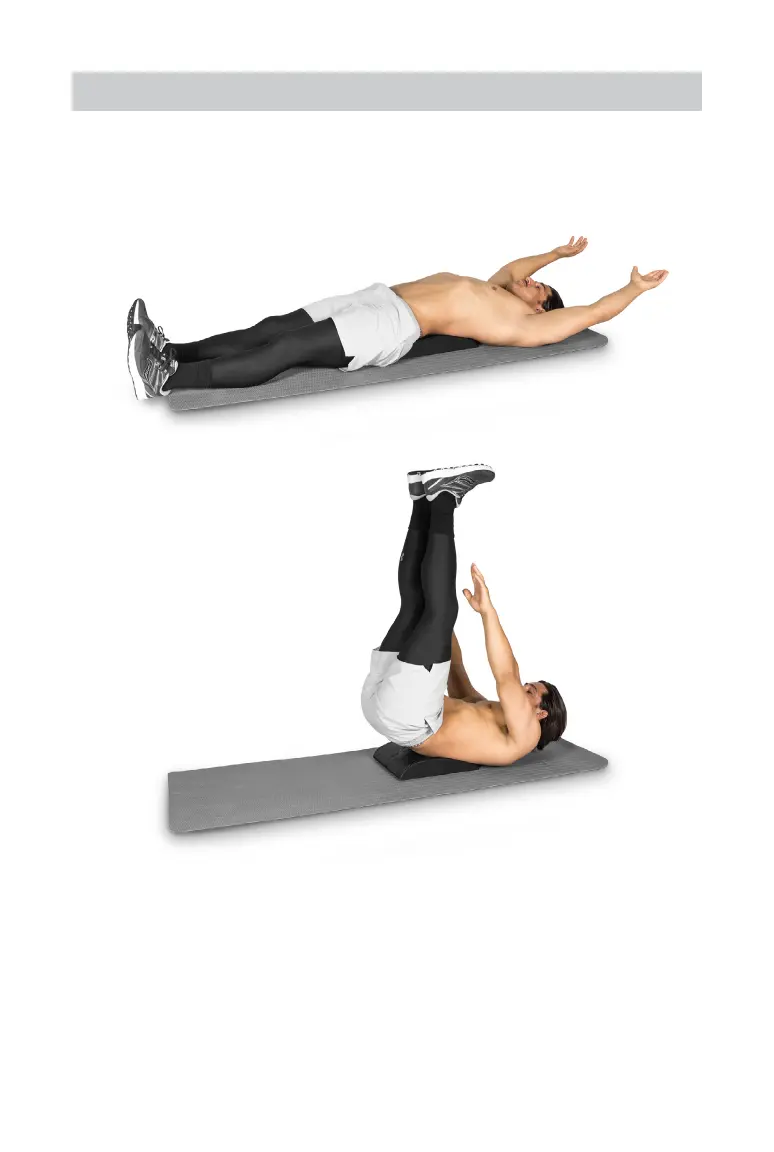 Lift your legs straight up while keeping your back on the ab mat. Your feet