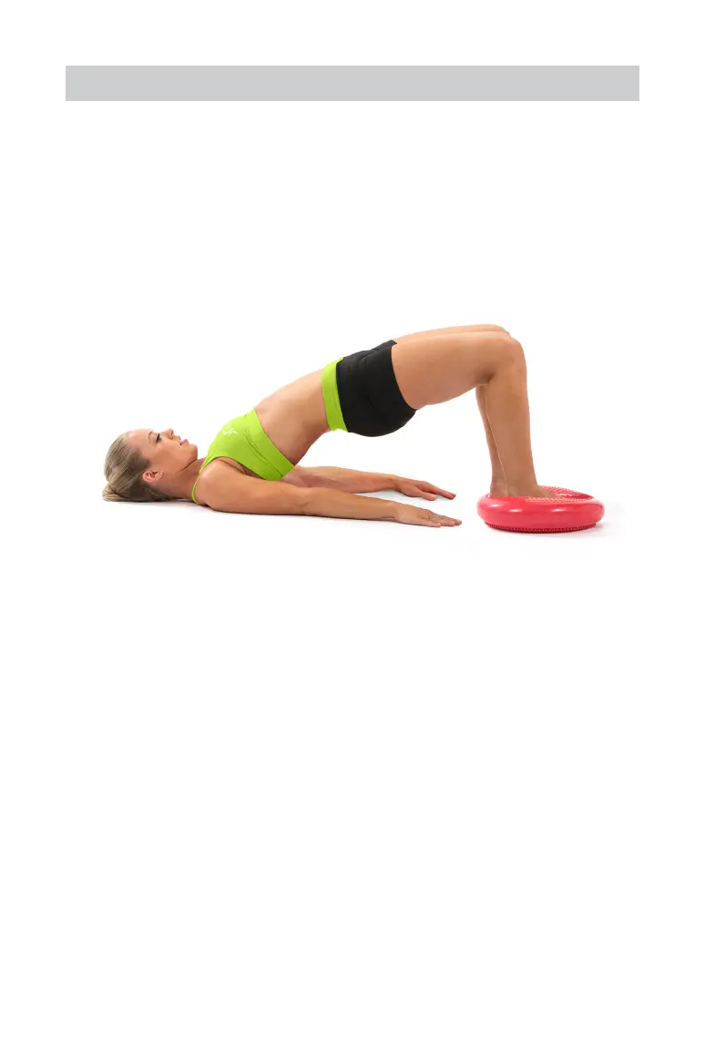 Press up through your heel, raising hips toward the ceiling and exing glutes.