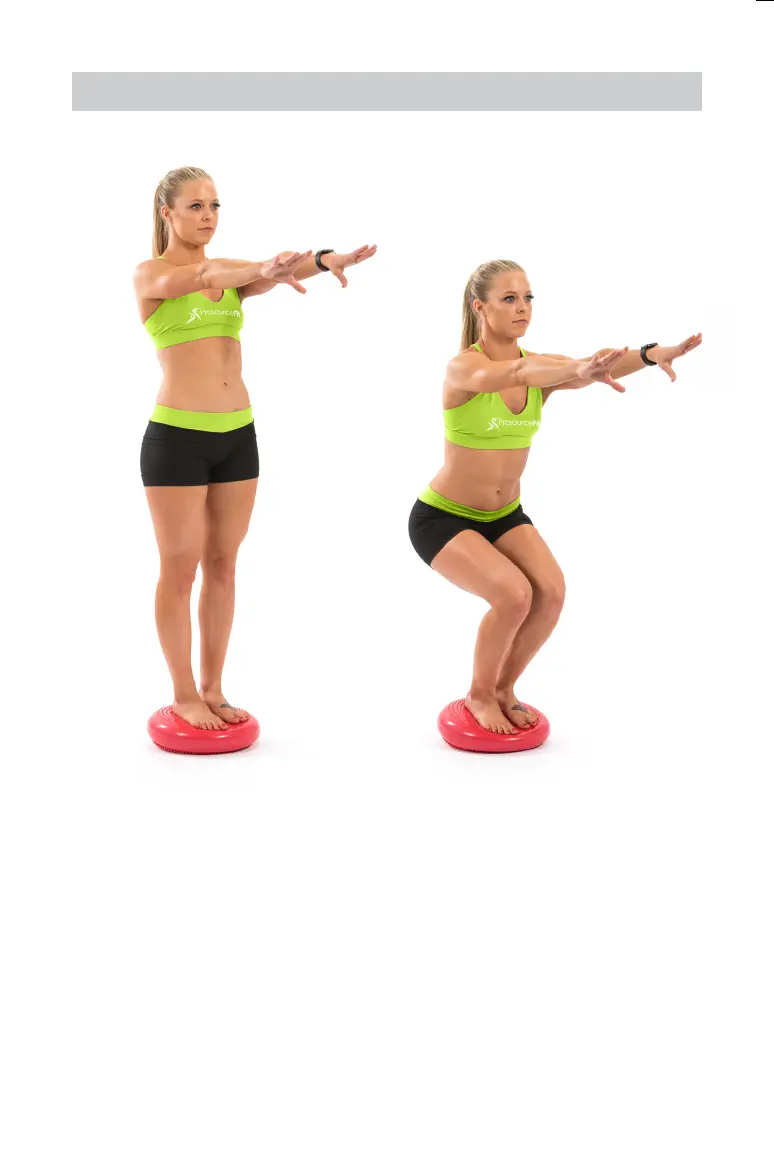 Once stabilized, slowly bend your knees and waist to perform a squat.