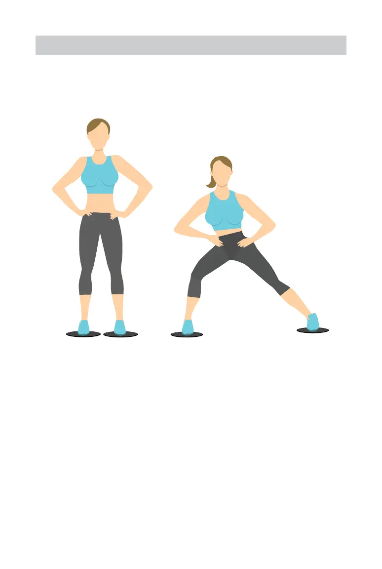 Start standing with feet about hip-distance apart with both feet on sliders.