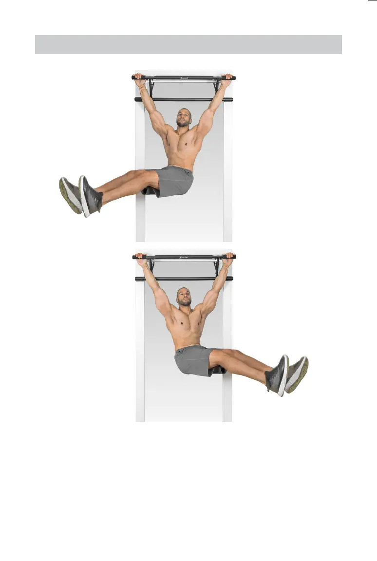 Facing away from door frame, grip foam handles with palms facing away