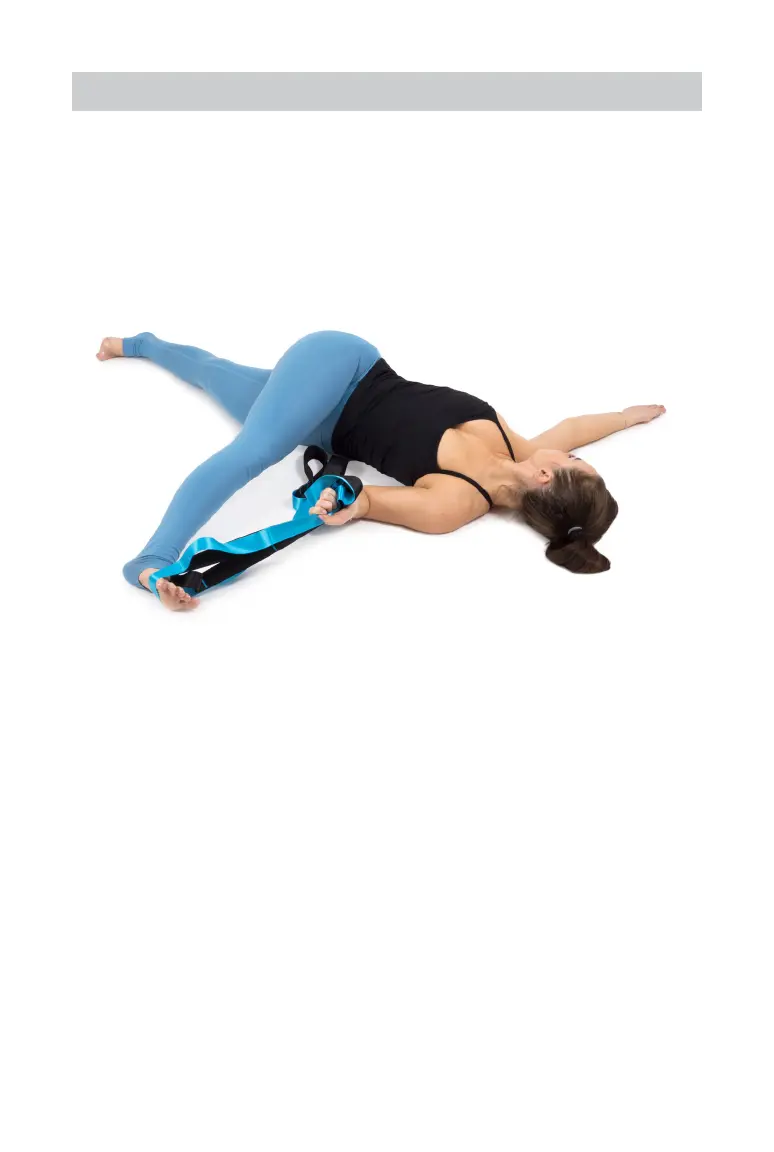 Place the strap in your left hand and slowly lower the right leg to the left, twisting