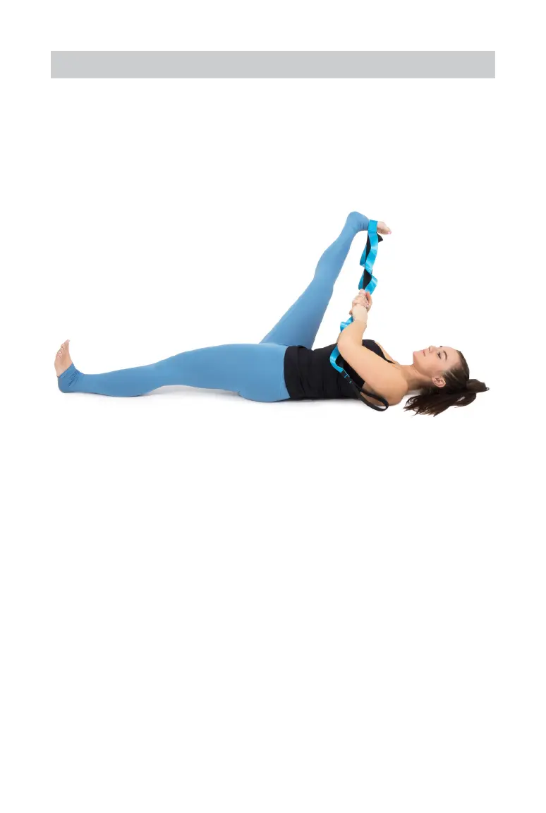 Grab strap with both hands, keep spine neutral with back and hips on the oor and