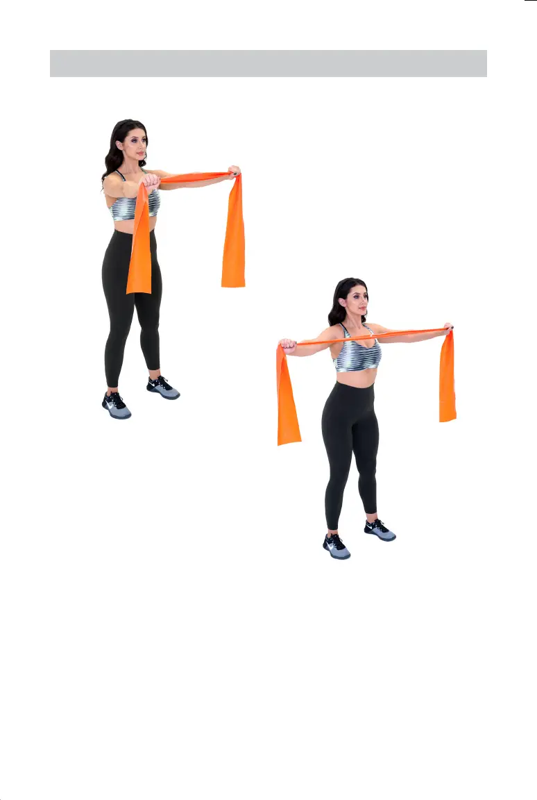 arms straight, pull the band apart and back, bringing the band to your chest.