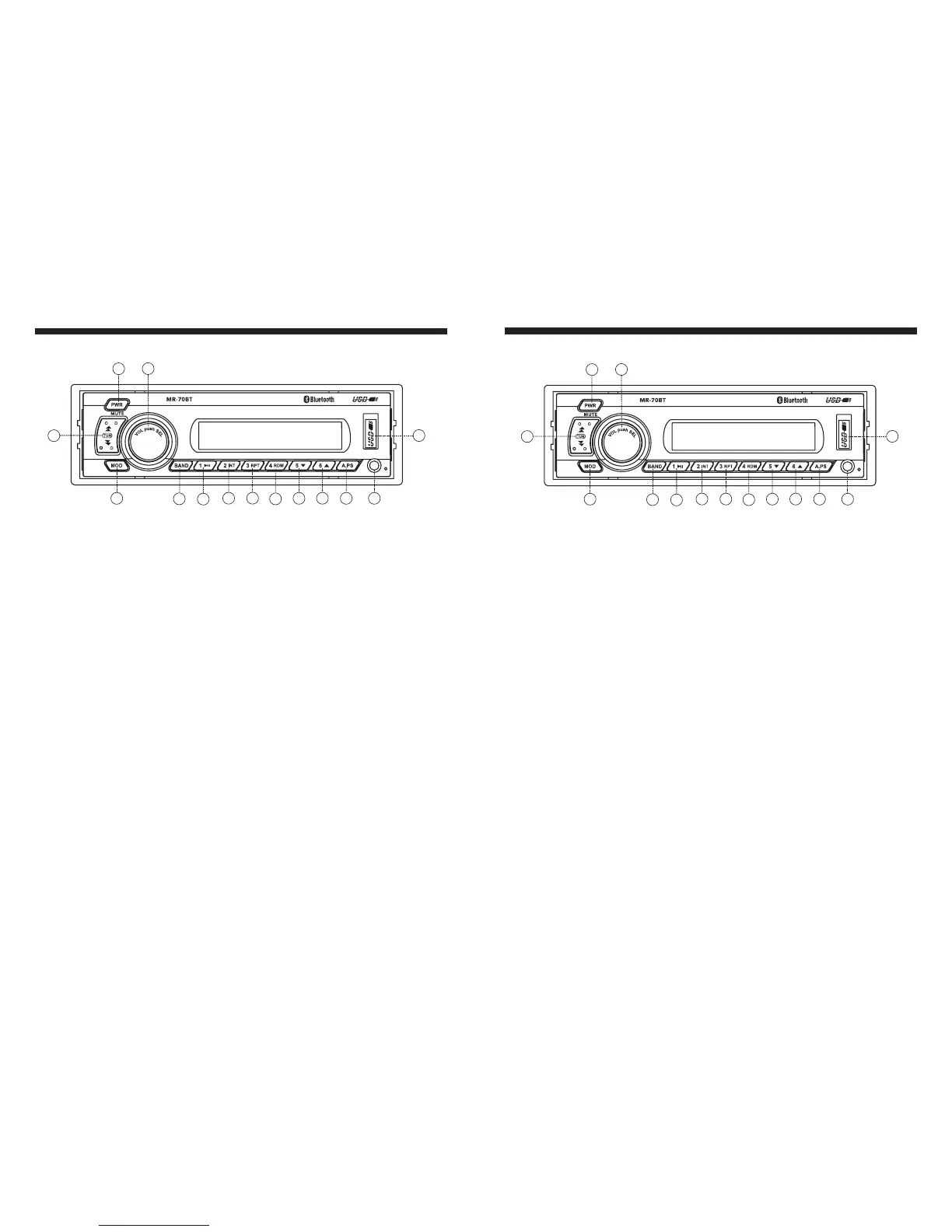 3. MODE button ( Radio --> USB --> BT MUSIC --> AUX IN)