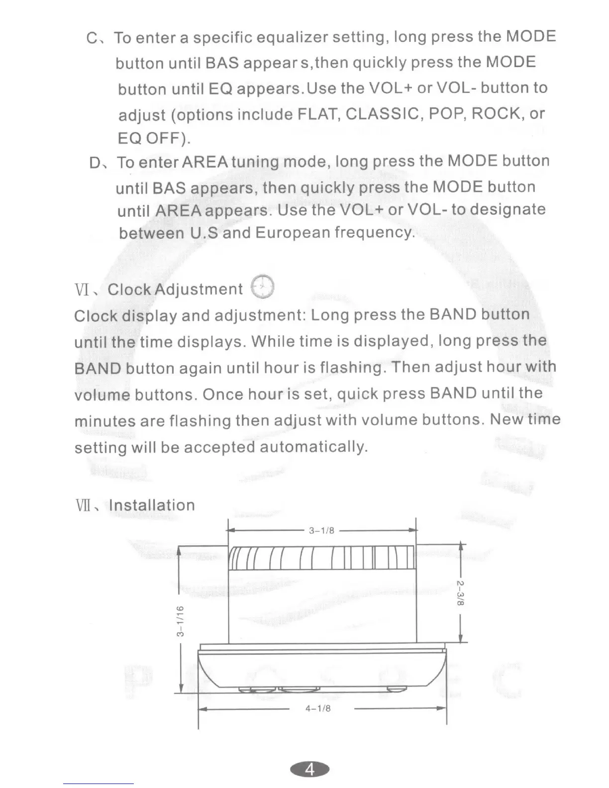 Prospec millenia PRV16 - System Setup and Configuration; Clock Display and Adjustment; Installation and Dimensions