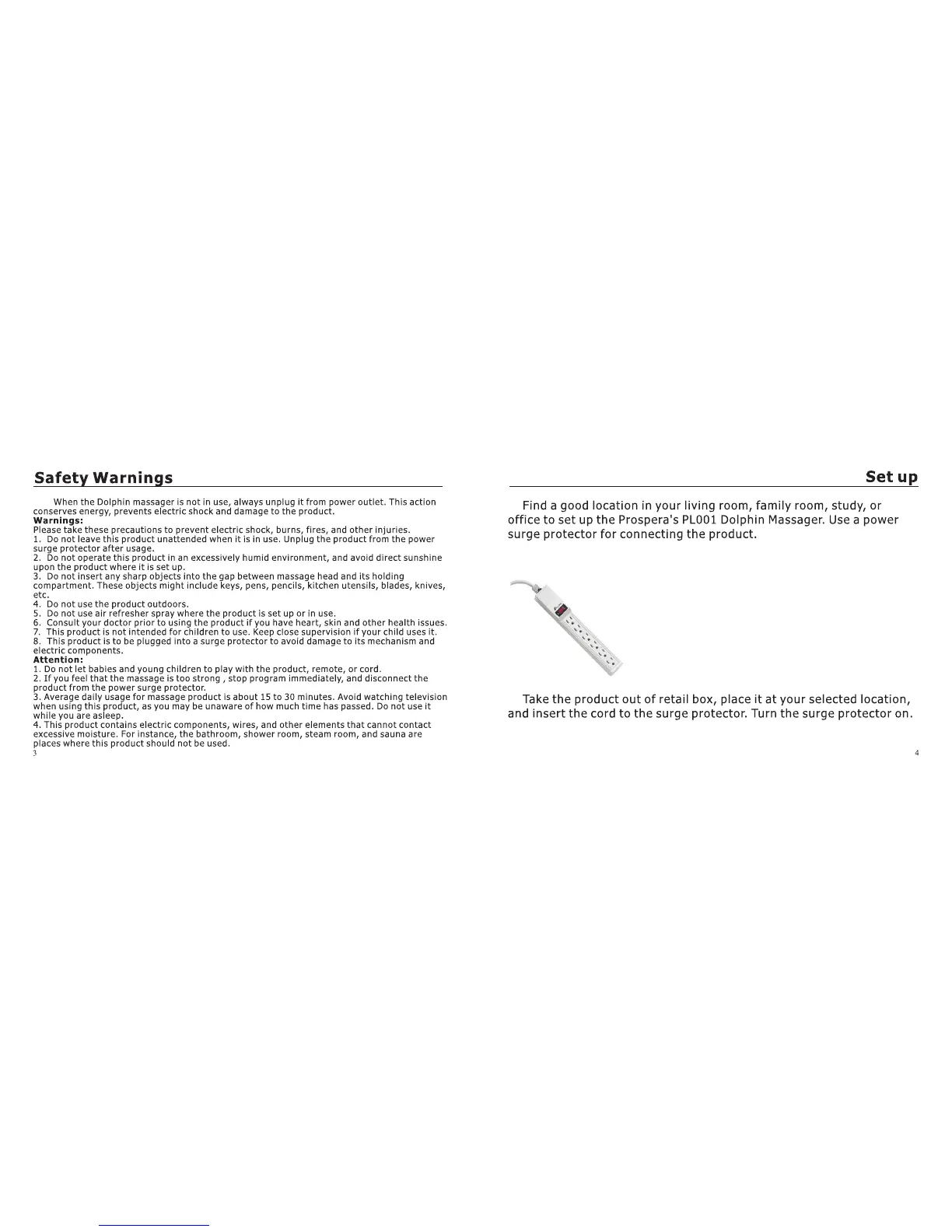 Prospera Dolphin - Safety Warnings; Set up