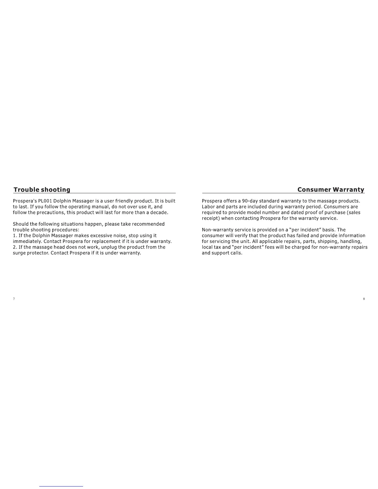 Prospera Dolphin - Trouble shooting; Consumer Warranty