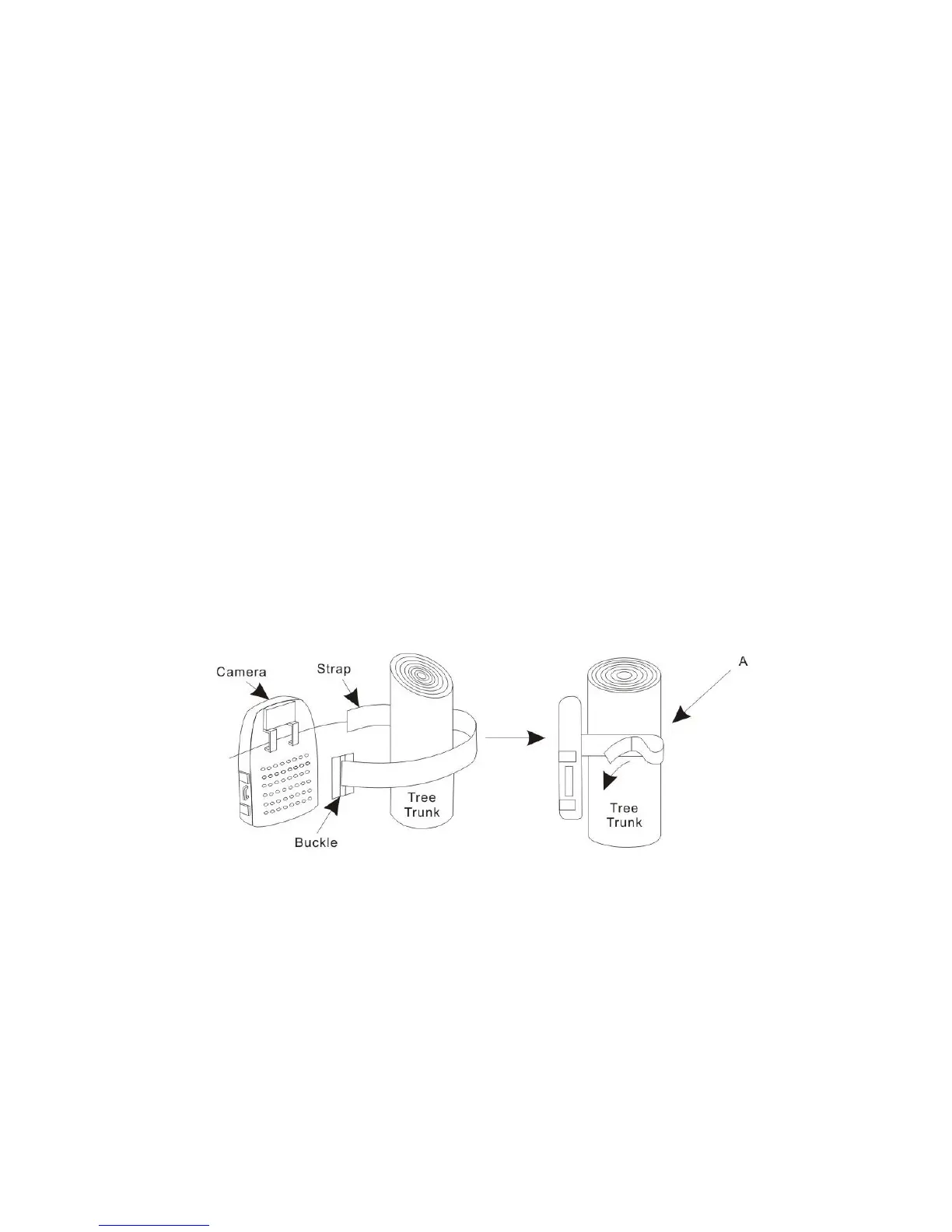 b) Wrap the strap around the mounting surface. Secure the strap and tighten the buckle in