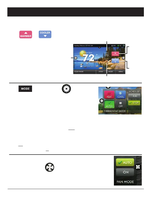 HEAT OR COOL MODE - Pressing the WARMER or COOLER buttons in Heat or Cool mode