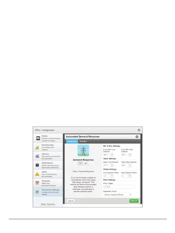 The Static Settings are applied when the utility sends a signal to allow the occupant