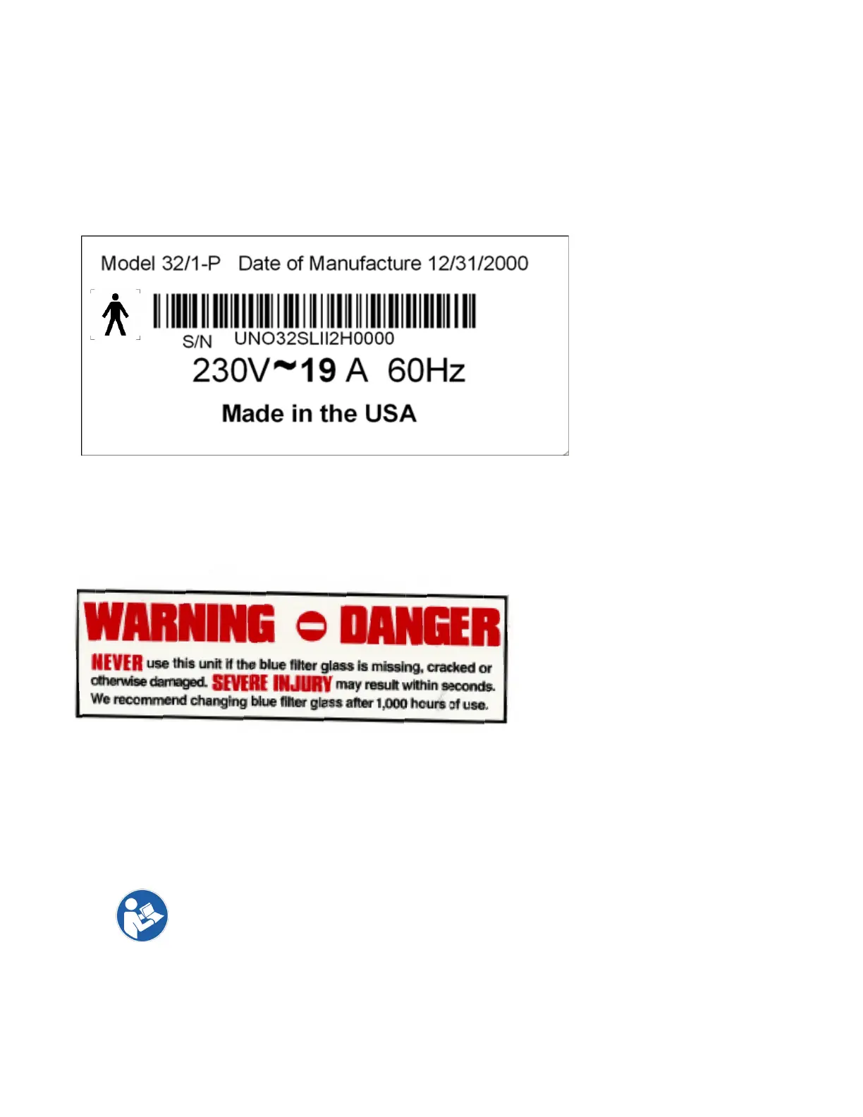 Warning Danger label is located on the deco shield of the unit.