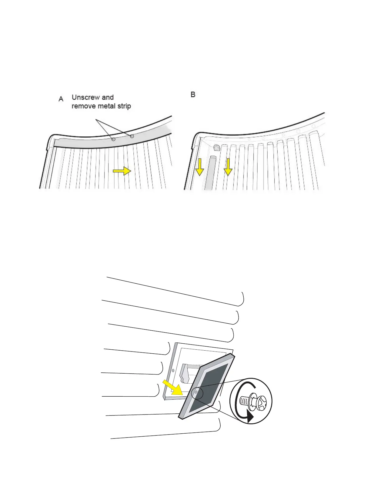 covers/ strips. Then with gloves on to protect the lamps from oils, twist the lamp and remove.