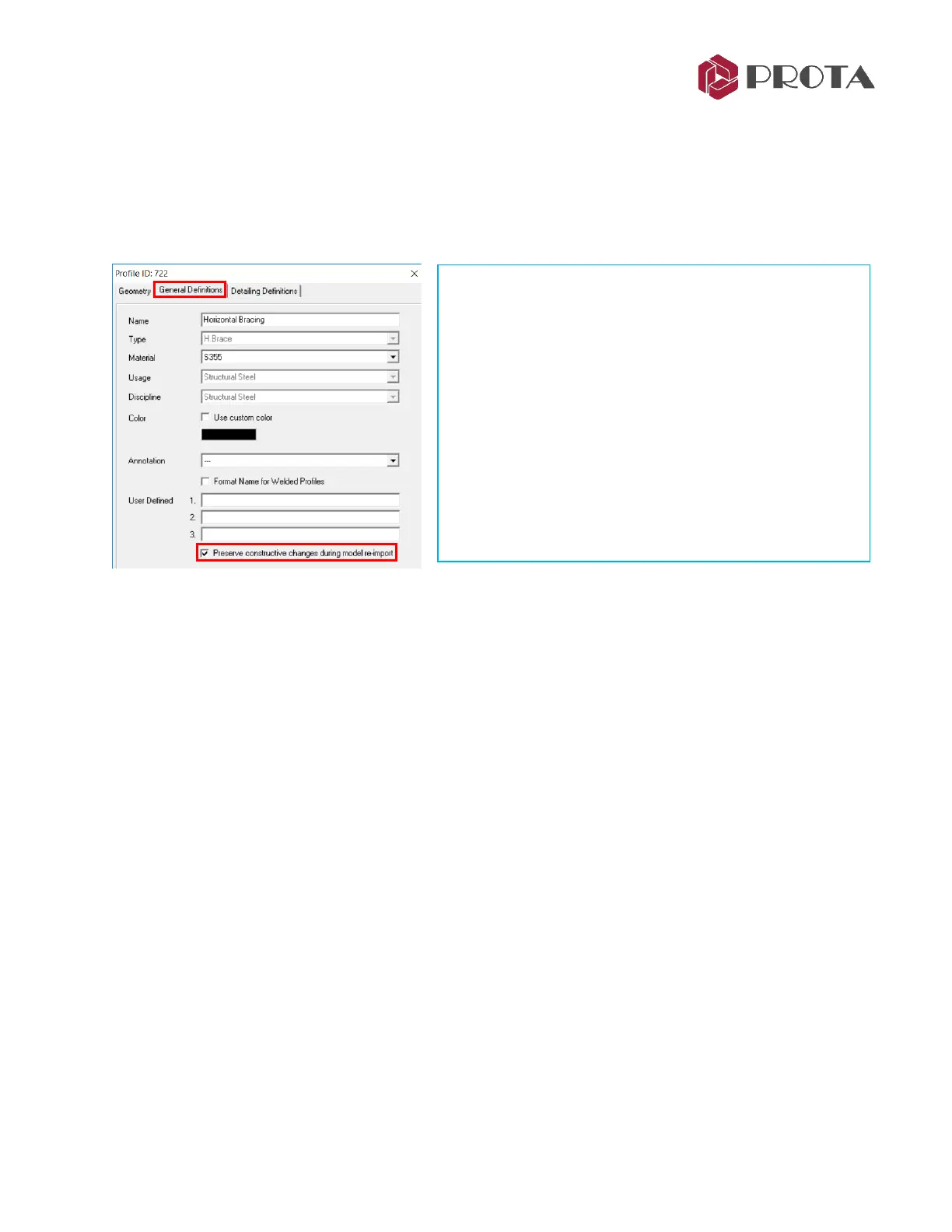 subsequent re-import from ProtaStructure. During the
