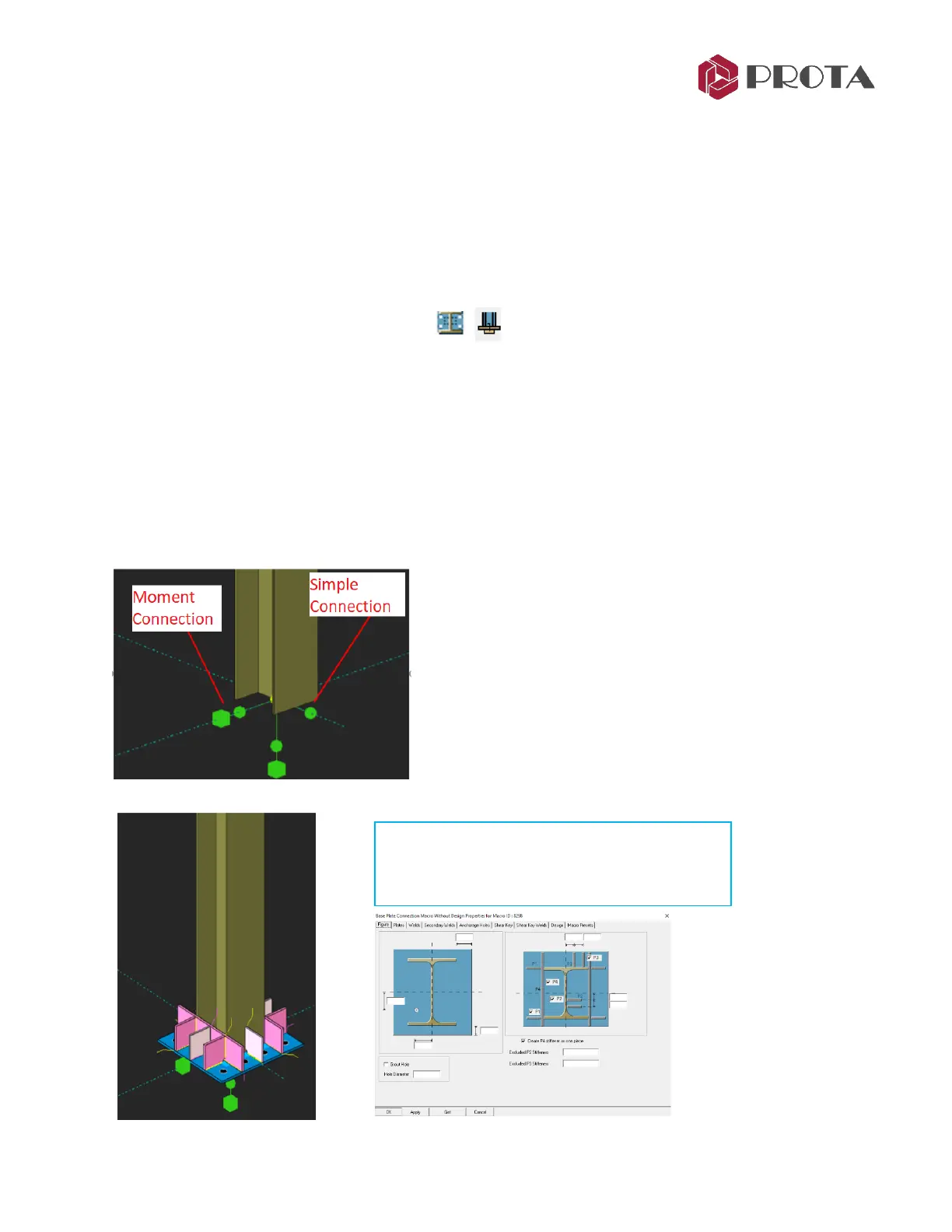 base plate macros in ProtaSteel for creating the base plate connection.