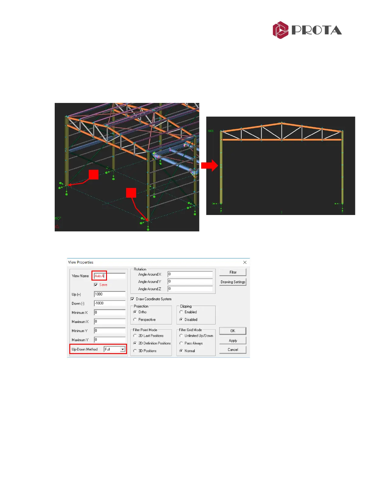 secondary trusses with gusset & end plates. Let us focus on the truss by creating a new view along axis A.