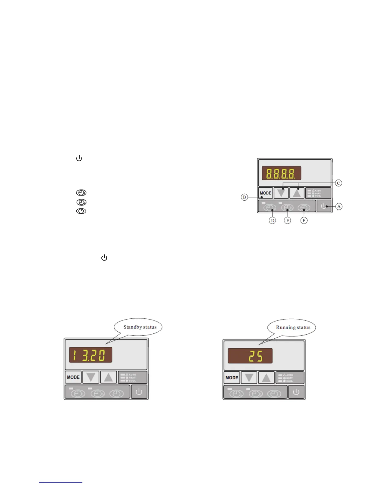 Press MODE to select auto, heating or cooling mode: the indicator light on the right side of the