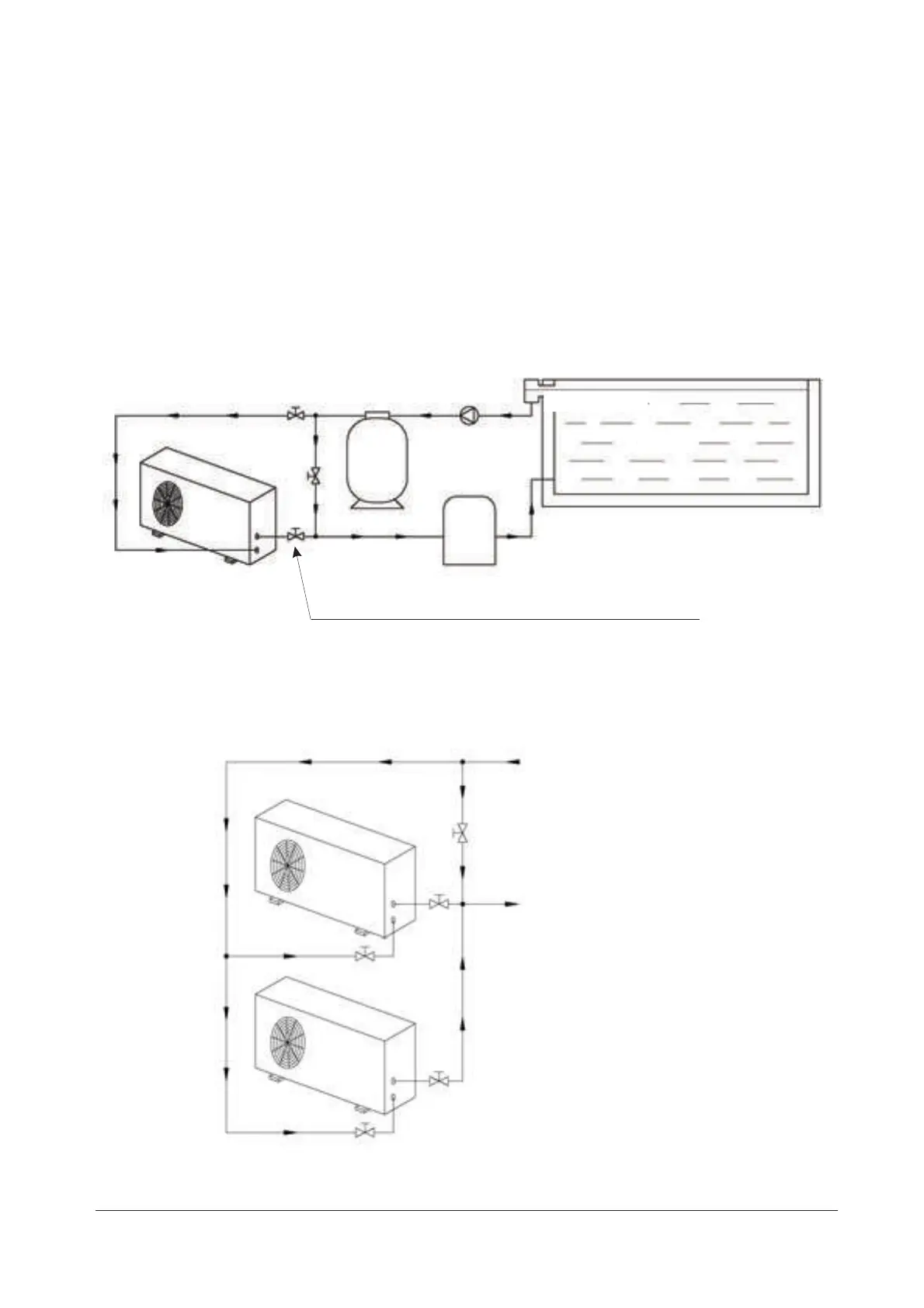 Water flowing out of filter is divided by three valves: Some water is led to the Heat Pump