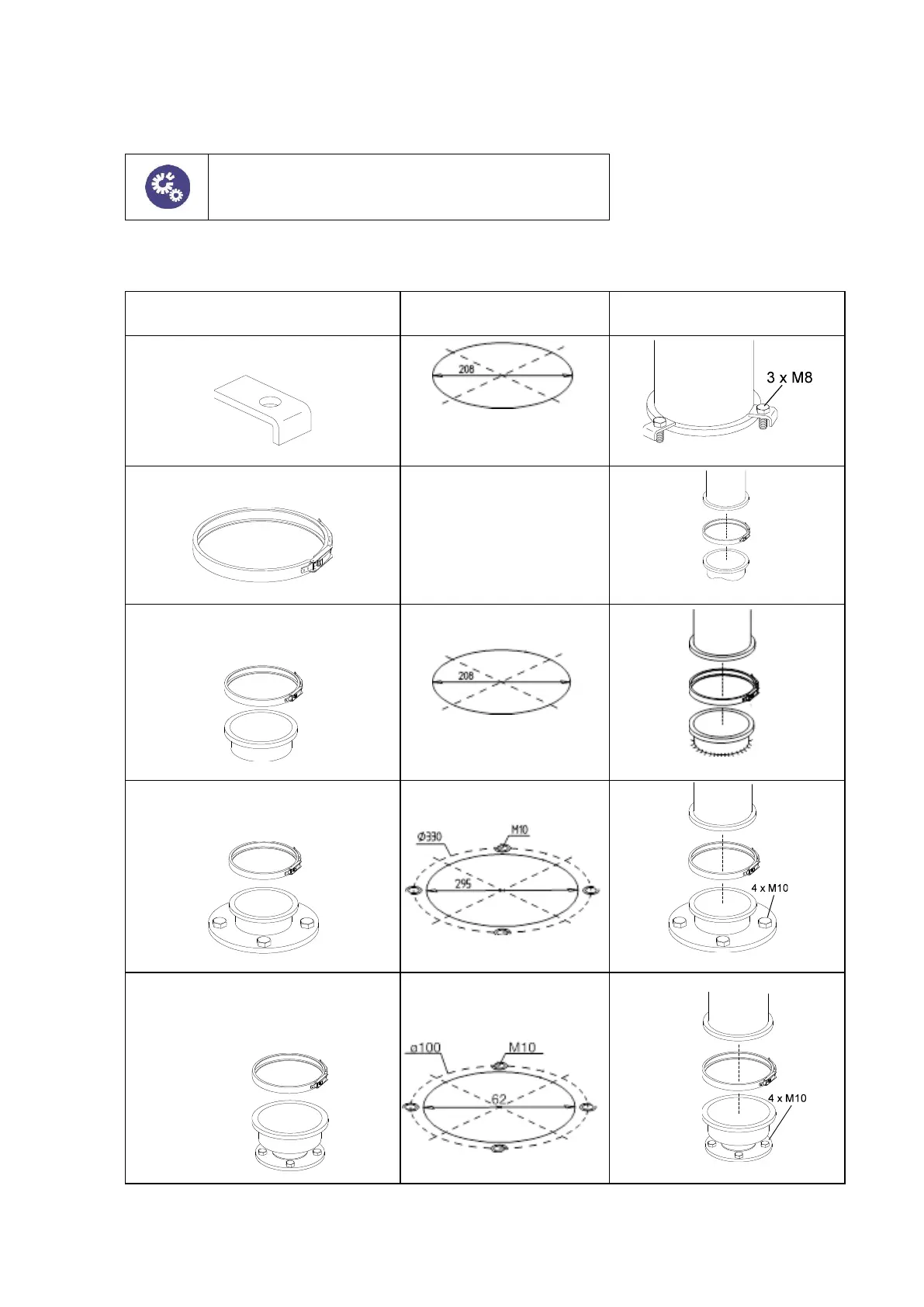 Depending on the mounting accessories there are the following options for fastening the