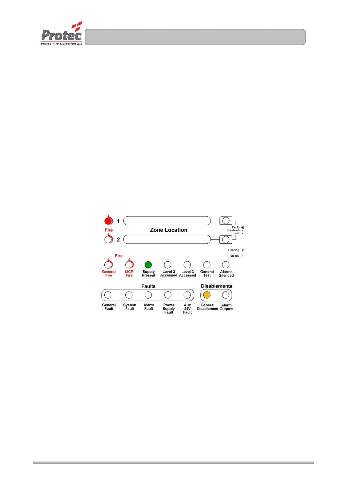 2. Press button 2 once – The ‘General Disablement’ indicator will illuminate to show the zone
