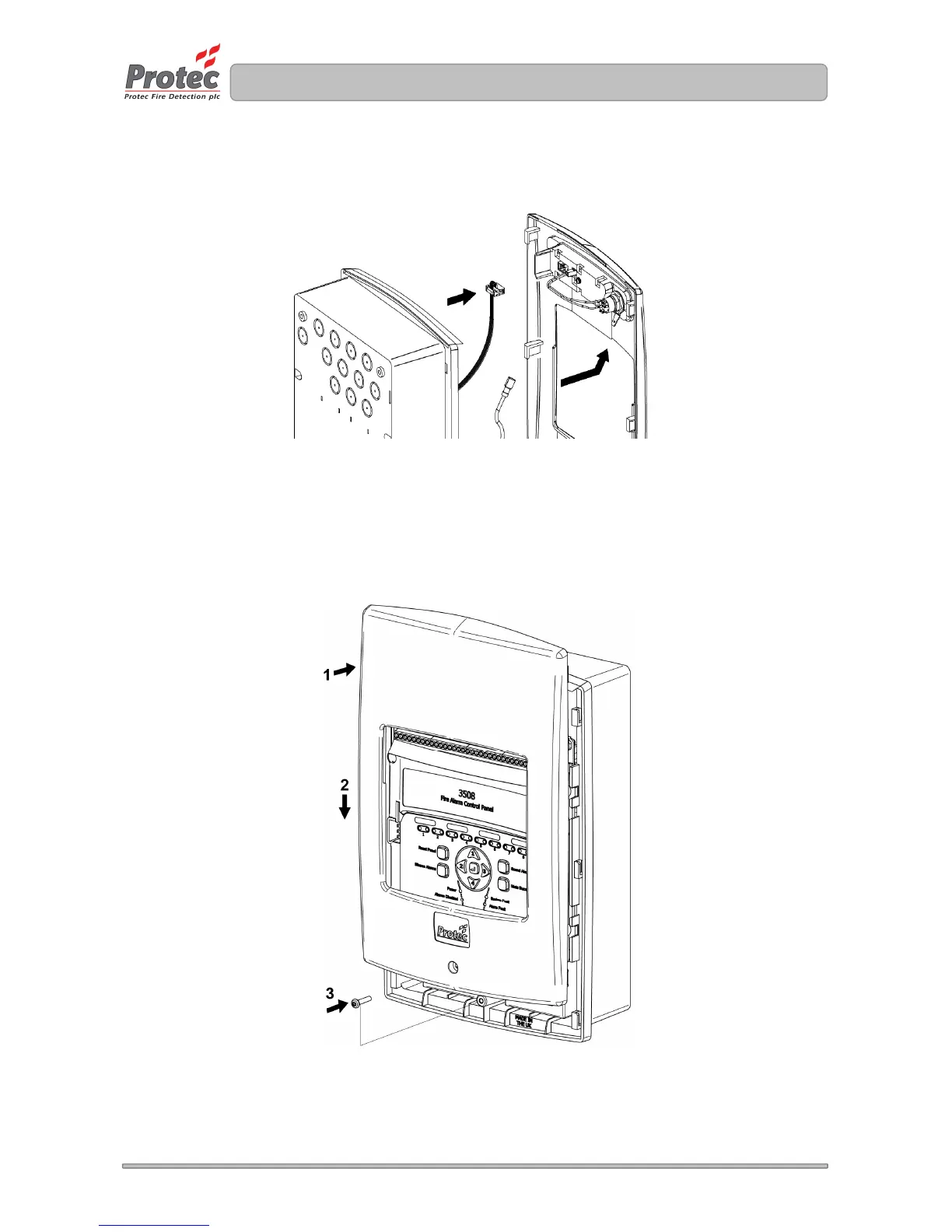 Before replacing the door ensure all mains, zone, alarm and auxiliary wiring has been completed and