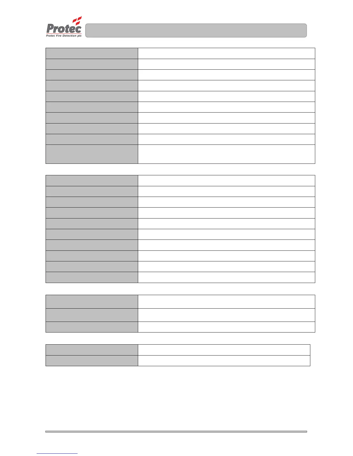 Maximum number of detectors per zone 25 Protec 3000PLUS/OP devices