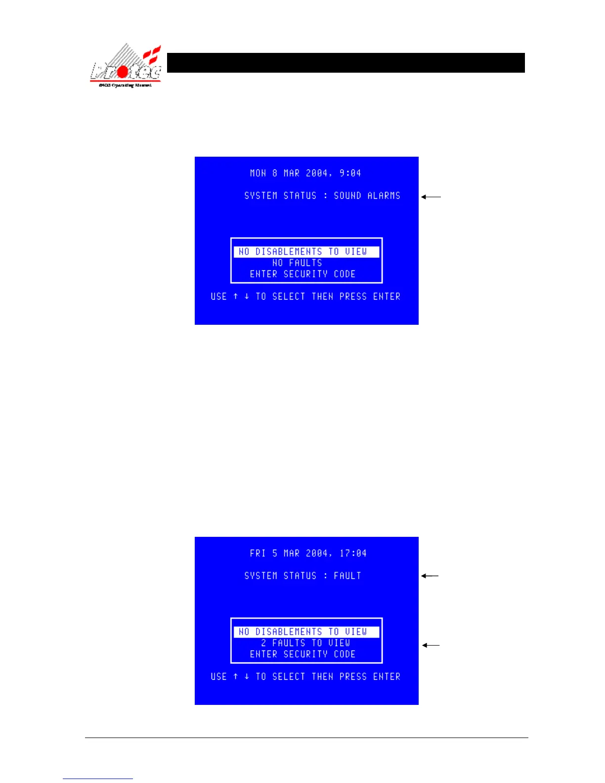 and mute the panel buzzer. The display will also return to ‘System status : Normal’.