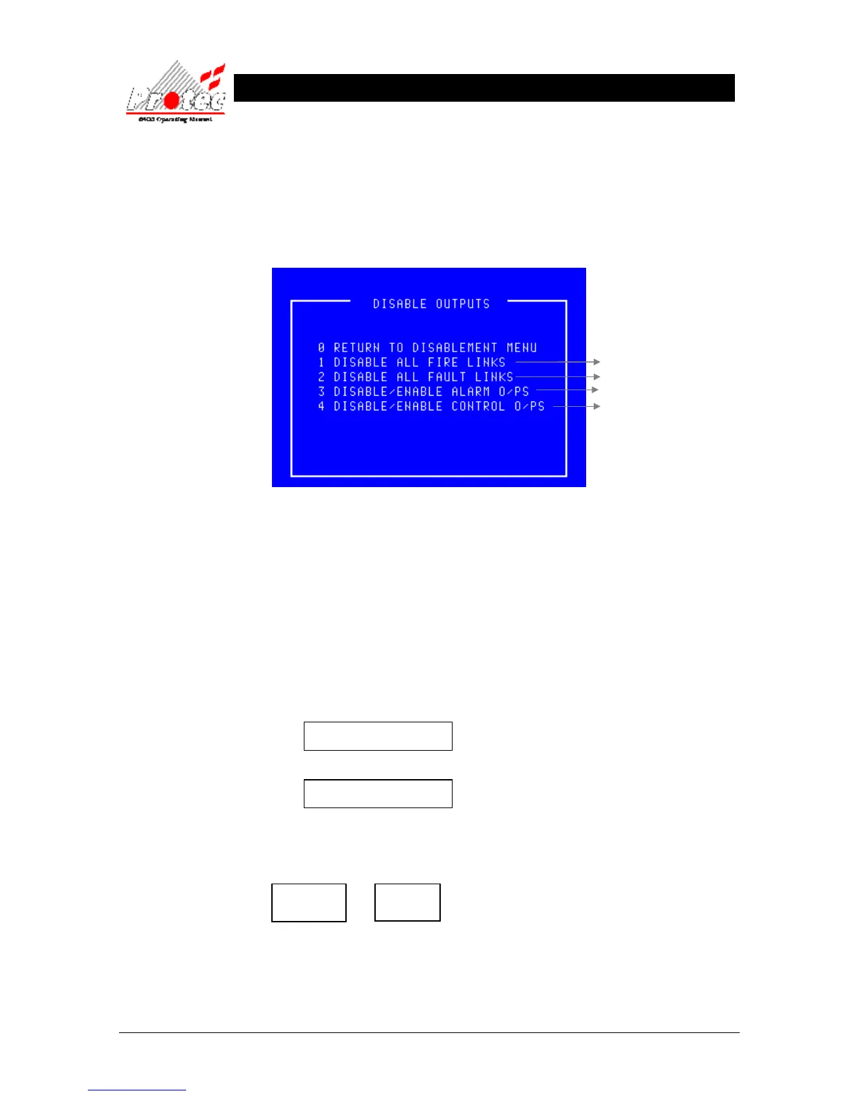 • Exiting Option : To EXIT the ‘Disable outputs menu’ and return to the ‘Disablement Menu’, press the ‘0’